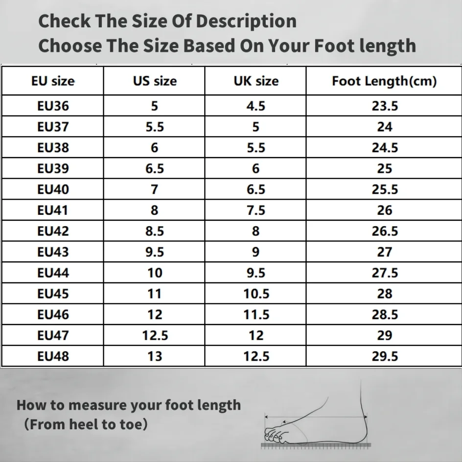 3. Due to different size rules in different countries. Please choose the appropriate size based on your actual foot length (CM). Thank you