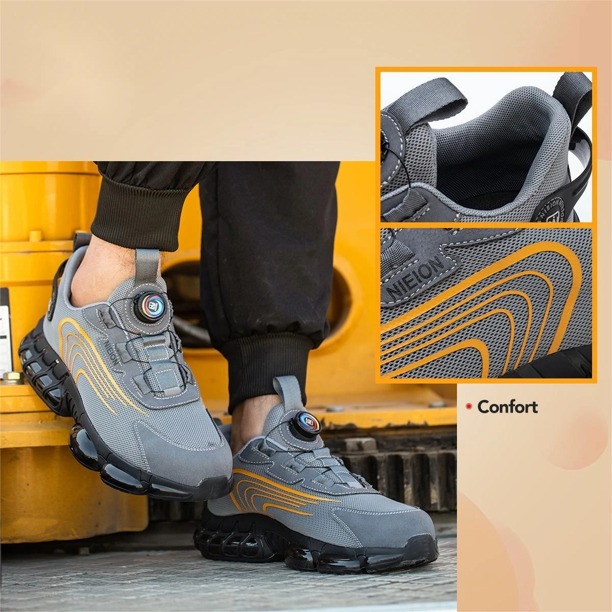 Shoe toe: With a steel toe to protect the toes. It has an anti impact effect.