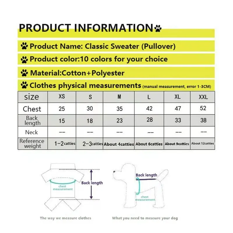Size choice: please measure the chest girth and back length of your pet, and refer to the size chart before ordering, and note that your pet usually wearing a small size does not mean that all small sizes are suitable for him or her; If the size of the pet is close to the upper limit of the size chart, please chose a larger size