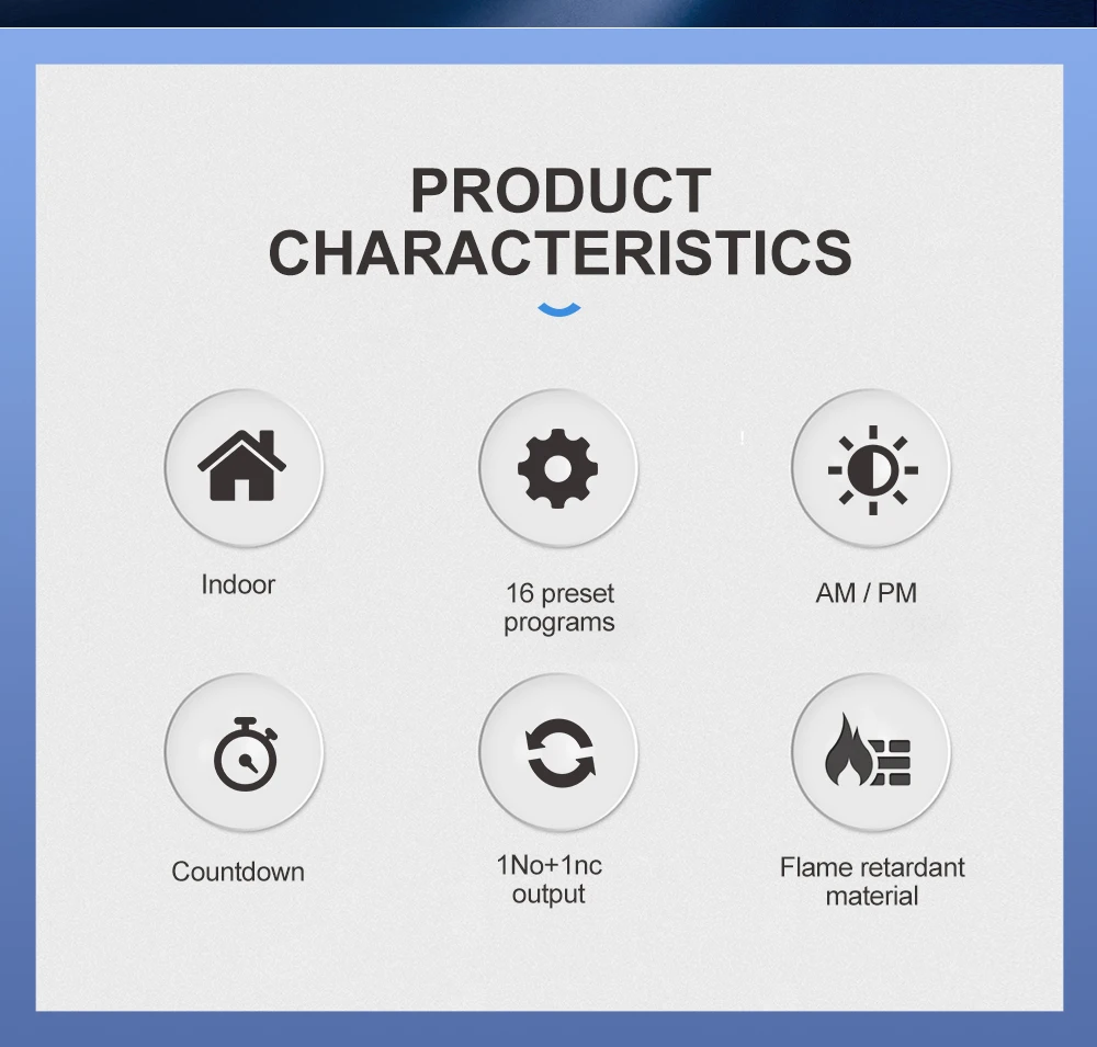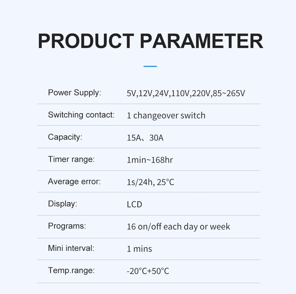 Timer range: 1min~168hr | Recharge battery: 1.2V 40Ma |