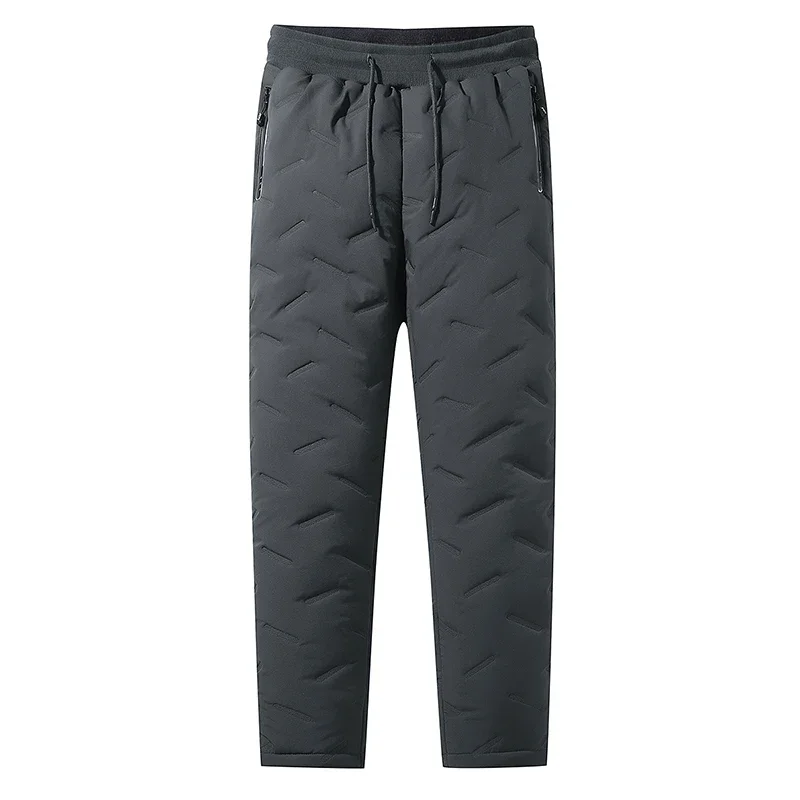 Size: XL, Color: green - Winter Down Cotton Pants Men's Casual Waterproof Zipper Pocket Thickened Wool Warm Pants Jogger Outdoor Cold-proof Ski Pants 7XL