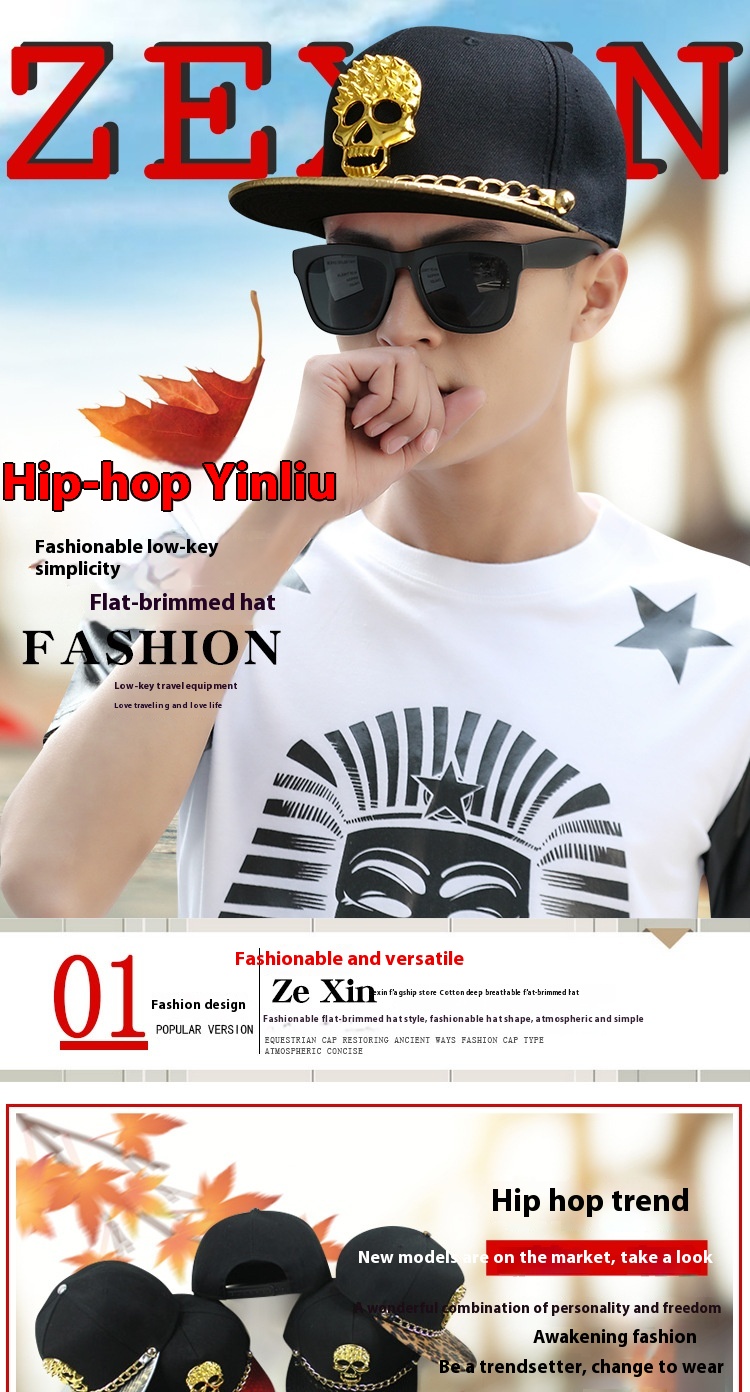 Skull Rivet Hip Hop Baseball Cap Hip Hop Flat-brimmed Cap