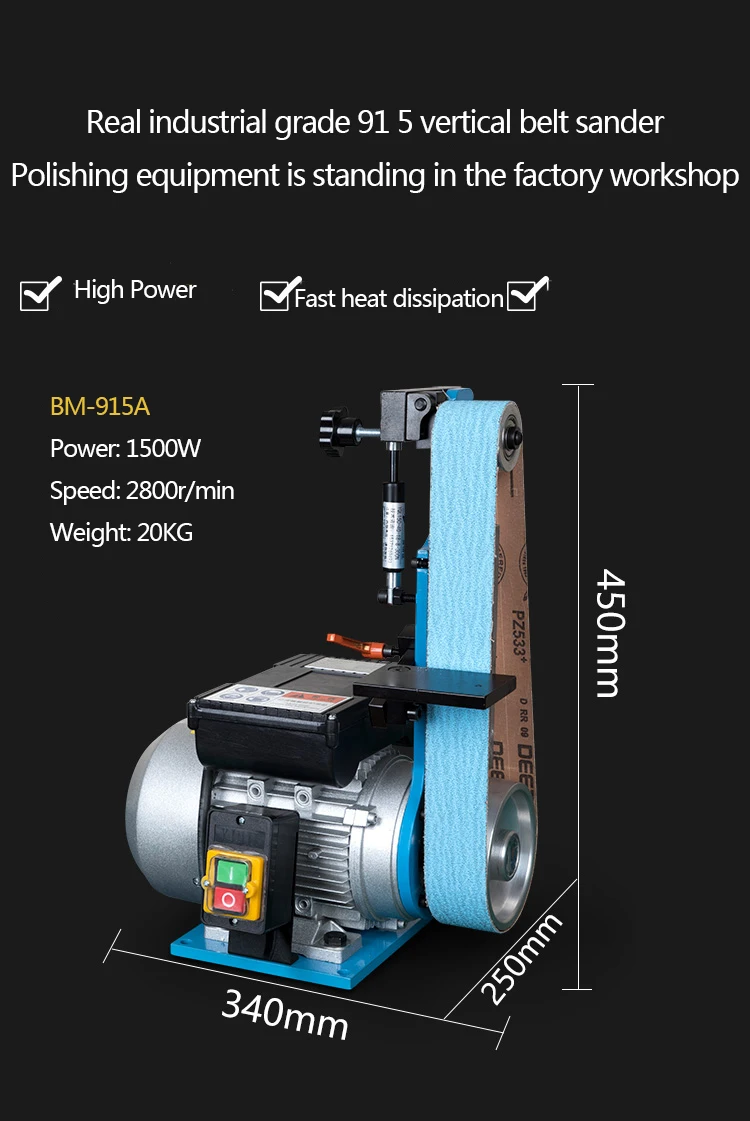 Enhance your woodworking and metalworking projects with our Small Vertical Sanding Belt Machine, an electric tool designed for efficient grinding, polishing, and knife sharpening. Compact yet powerful, this versatile sanding machine is ideal for hobbyists, DIY enthusiasts, and professionals alike. Its vertical design and adjustable sanding belt provide optimal control for a variety of tasks, from shaping wood and metal to sharpening knives and removing burrs with precision.