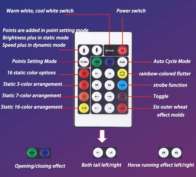 Full Color WheelSynchronized With Music & SoundControlled by App & RemoteEasy to InstallMotionless & Party Modes