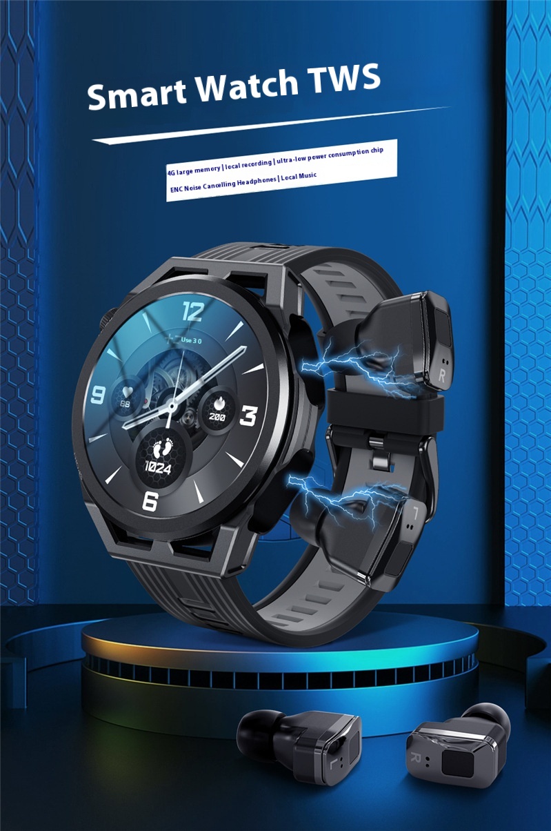 Smart Watch Headset 2-in-1 TWS Two-way Call 4G Memory Smart Watch