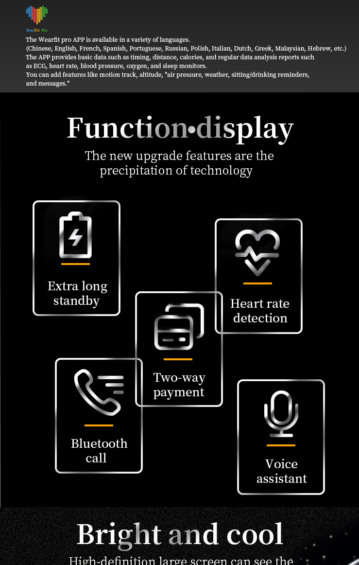 temperature measurement, Bluetooth calling, NFC function, smart reminder, sleep monitoring, blood oxygen detection