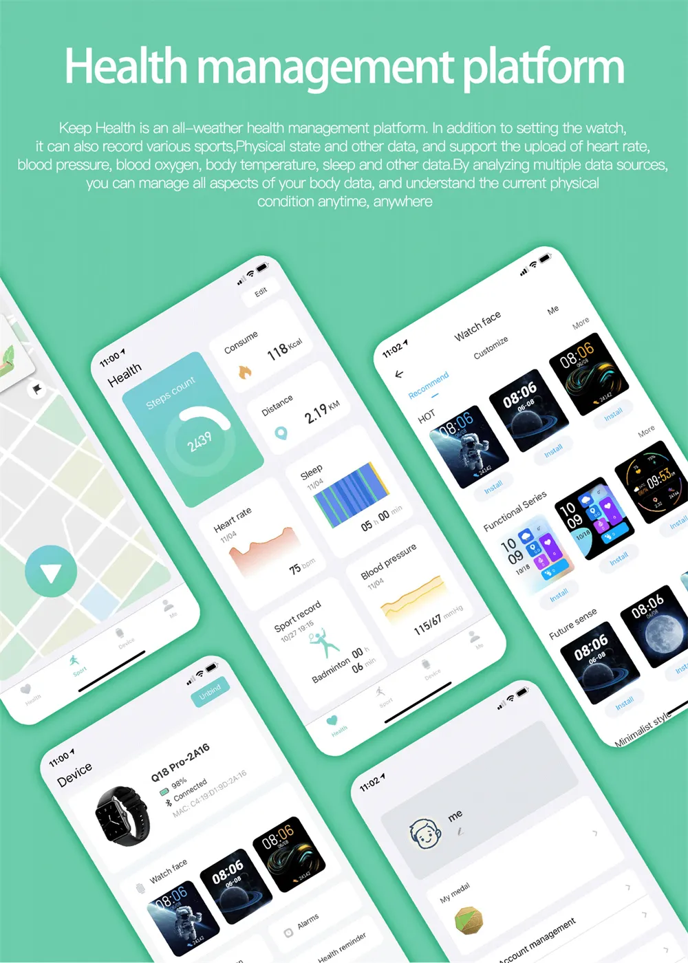 Health and Fitness Tracking: Includes features such as heart rate monitoring, sleep tracking, step counting, and calorie