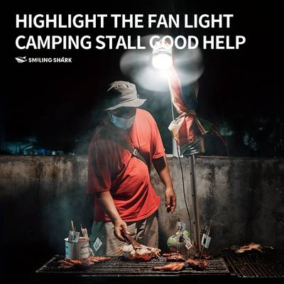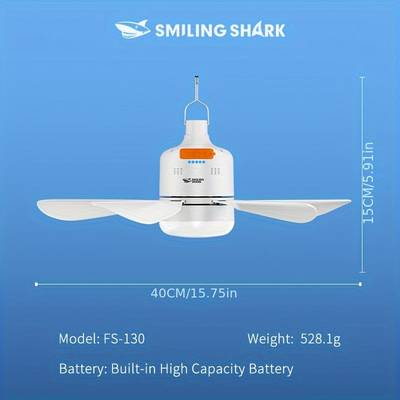 SMILING SHARK 2-in-1 Outdoor Camping Fan Light FS130 – USB Rechargeable Fan with Lighting Modes for Camping, Tents, and Home Use