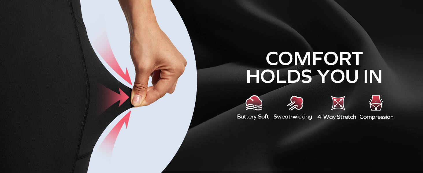 - Ultra-Stretch Fit ( Enough thickness with breathability: No See-through) Featuring the super soft and skin-friendly material, the Workout Leggings are moisture-wicking with a four-way stretch material that promotes both compression and support. In addition, a gusset crotch to maximize free movement and interlock seams to minimize rubbing and chafing make these leggings for women the perfect Yoga Pant for workout