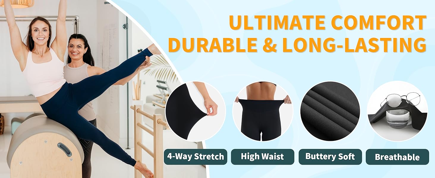 - 【High-Rise & 4-Way Stretch】 Our ultra-high-rise style features a 4-way stretch fabric that snugly molds to your body. No worries about unwanted pressure on your abdomen – it's smooth and comfy. No rolling, no riding up, just free and easy movement. Experience a breath of fresh comfort with built-in sweat-wicking ventilation.
