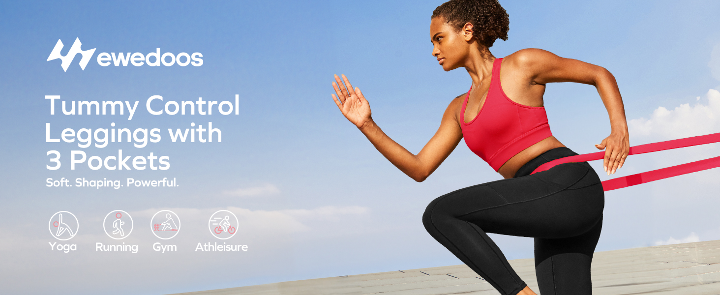 - Tummy Control Leggings: Shaping up isn't just about working out—it's about what you wear while you do it, too. Ewedoos yoga pants have a magic stretchy power, that allows them to cover everything without being seen through. These workout leggings stretch to feel like you are popping threads, but they form right back up and have good compression where it counts.