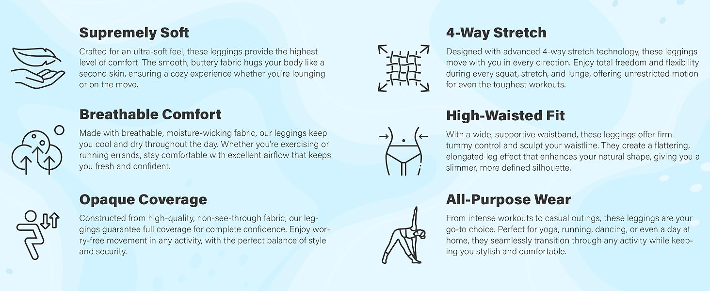 - 【HIGH-RISE, SLIMMING DESIGN】 Engineered with 6-Way Stretch Opaque Fabric, these leggings not only slim your figure but also promise sweat-wicking, moisture-management, and anti-shrink properties. The tummy-control, wide waistband ensures a smooth, secure fit, accentuating your curves to perfection. Balancing fashion with functionality, our custom design feels like a second skin, preventing any discomfort or chafing.