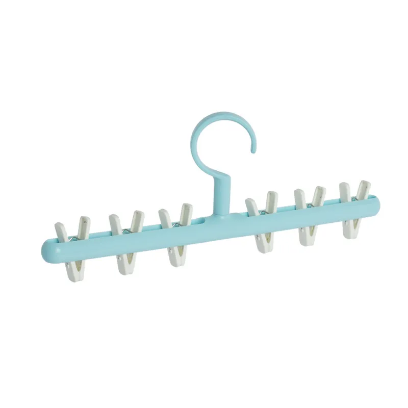 The hanger features a hook or rotating top that allows it to be easily hung on clotheslines, drying racks, balconies, or shower rods. Many designs include a 360-degree rotating hook, making it convenient to access all items without removing the hanger.