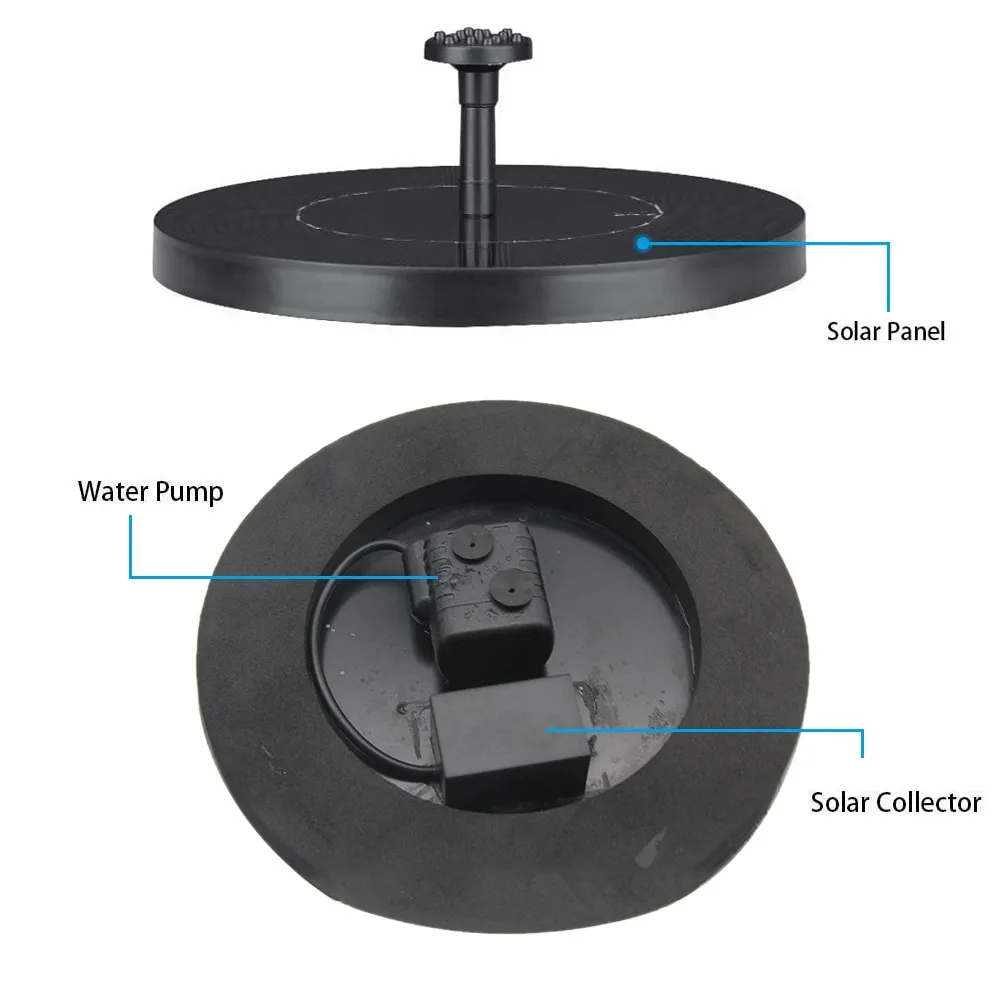 The solar pump is added to a new bottom cover to effectively prevent a clogged nozzle. The solar-powered bird fountain kit will stop working
