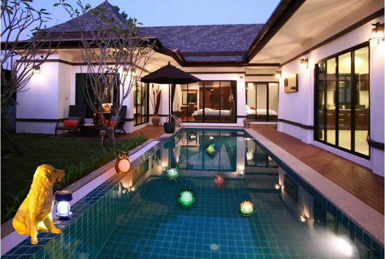 - Solar-powered light, 7 color changing LED, water floating lights, dragonfly or butterfly ornament