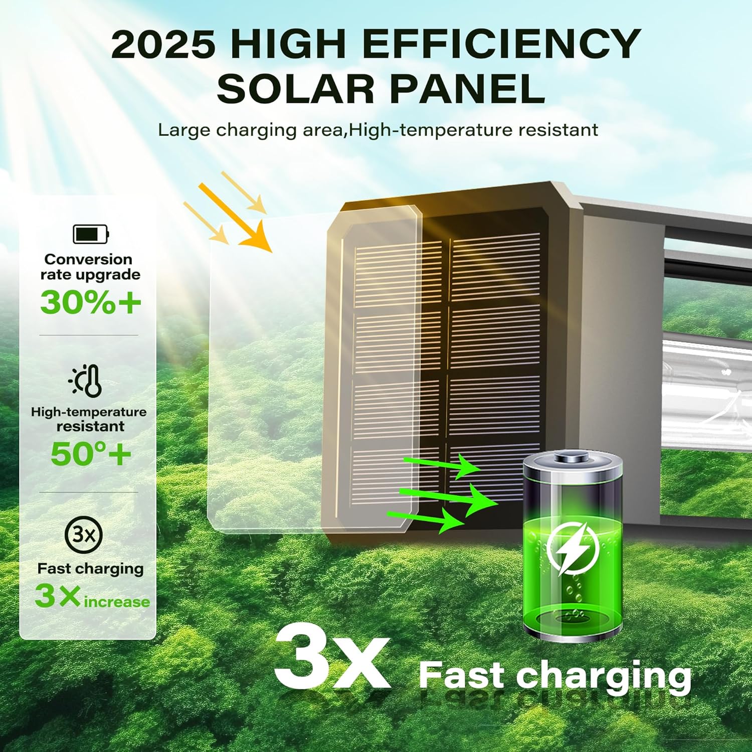 superior conversion rate compared to traditional amorphous silicon solar panels. This means faster charging times for your