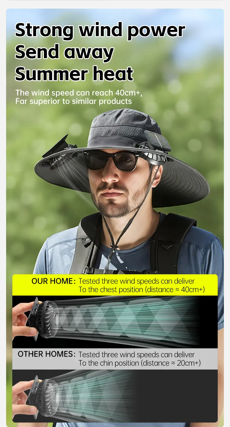 Effective Cooling Technology: The solar-powered fan ensures that you stay cool, even during the hottest outdoor activities.