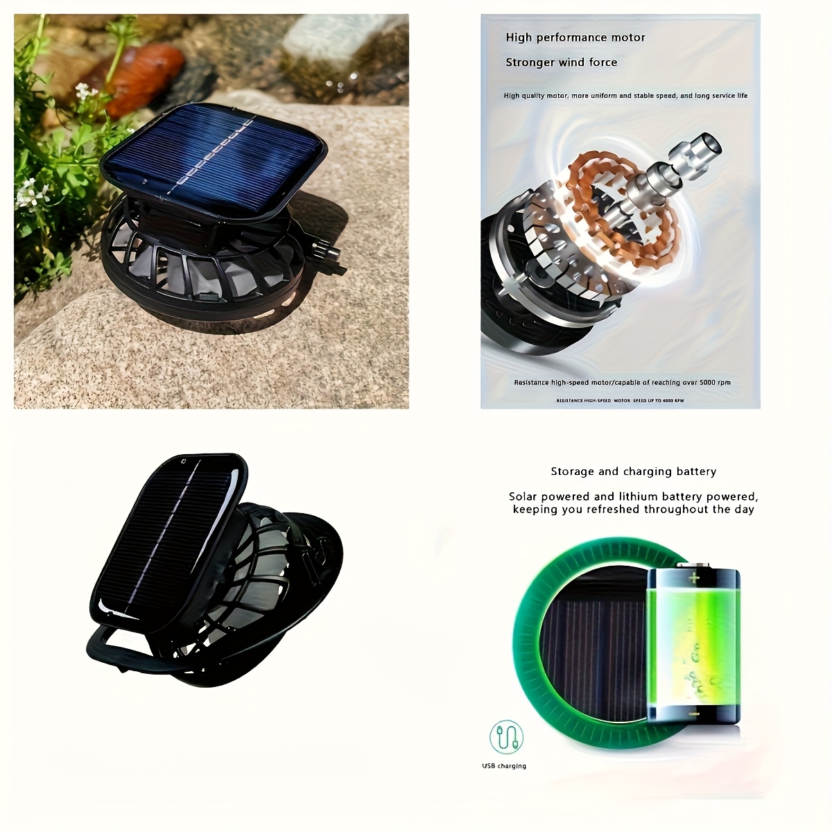 Solar-Powered Fan Sun Hat - Rechargeable with USB Port,