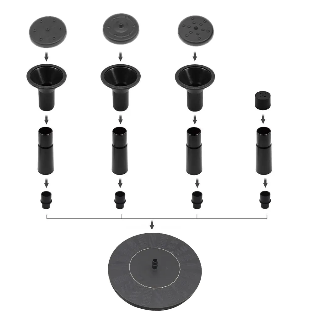 The Solar Powered Fountain typically includes a selection of interchangeable nozzles, allowing you to customise the water display.