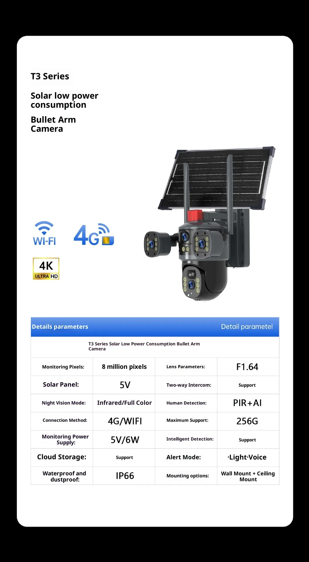 SEO Keywords: Solar surveillance camera, 4K security camera, trinocular camera, outdoor security system, solar-powered camera, PTZ surveillance camera, night vision security camera, remote access security camera, motion detection camera, sustainable security solutions.