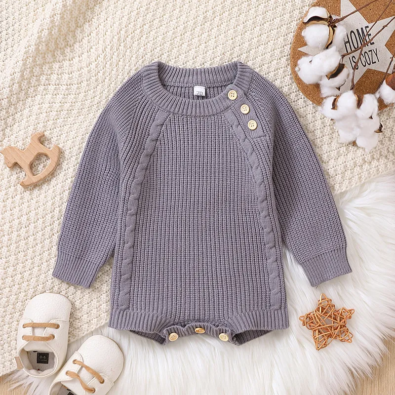 H1: Cozy Solid Color Long Sleeve One-piece Sweater Keep Baby Warm Romper