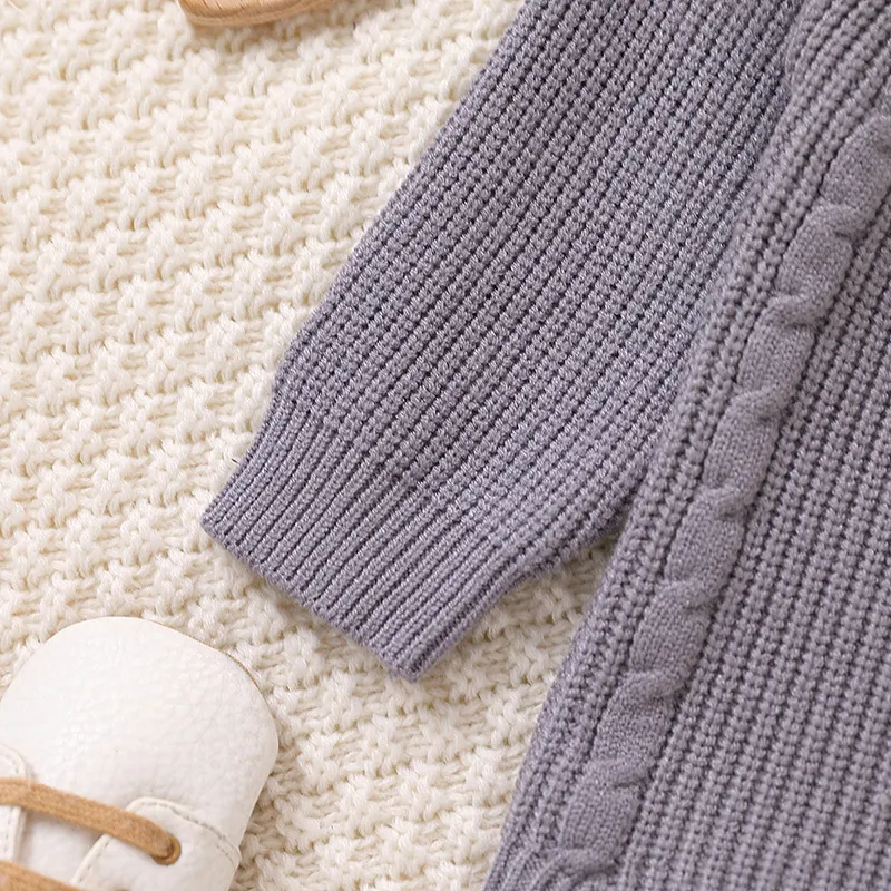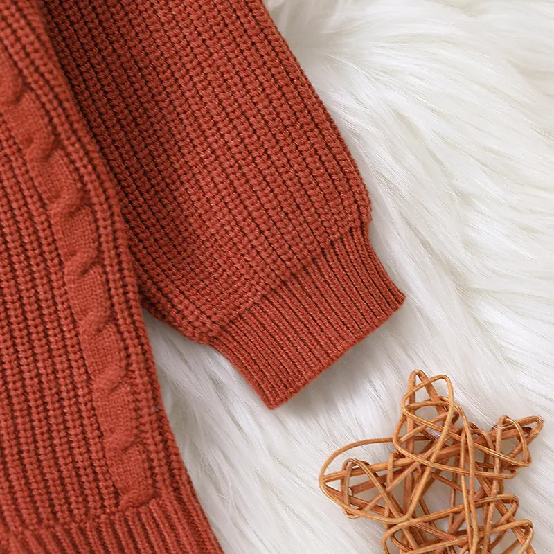 The Solid Color Long Sleeve One-piece Sweater Keep Baby Warm Romper is designed for easy care. It is machine washable and retains its softness and color even after repeated washes. The durable construction ensures that this romper can withstand daily use, making it a practical addition to your baby’s wardrobe for both wear and wash.