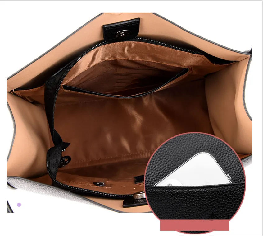 The shoulder bag is designed with a spacious interior that allows users to carry everyday essentials such as phones, wallets, cosmetics, keys, and small personal items. The structured interior helps keep belongings organized while still allowing quick access when needed.