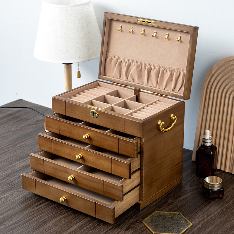 Solid Wood Jewelry Box Retro With Lock Wooden Storage Exquisite