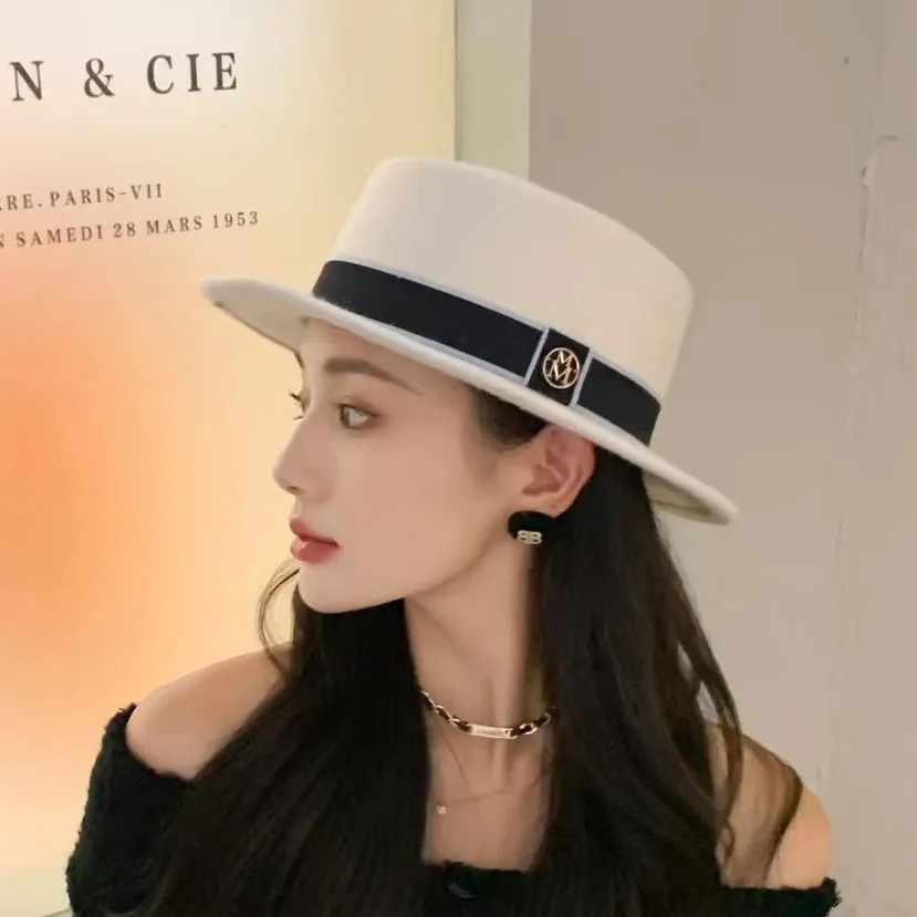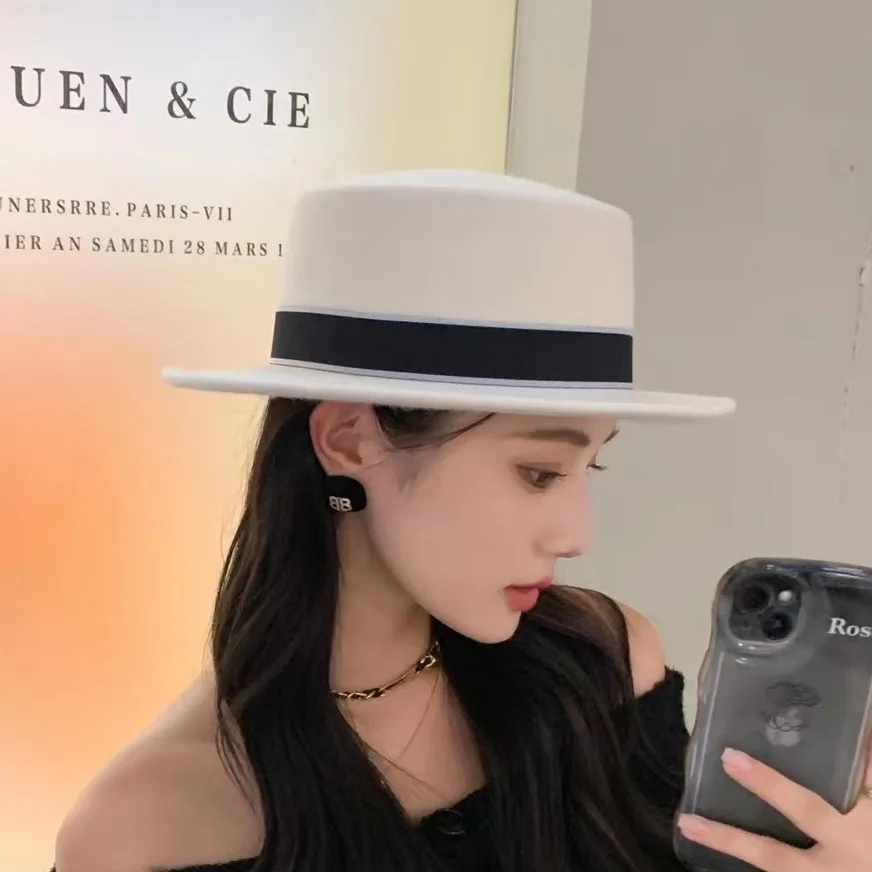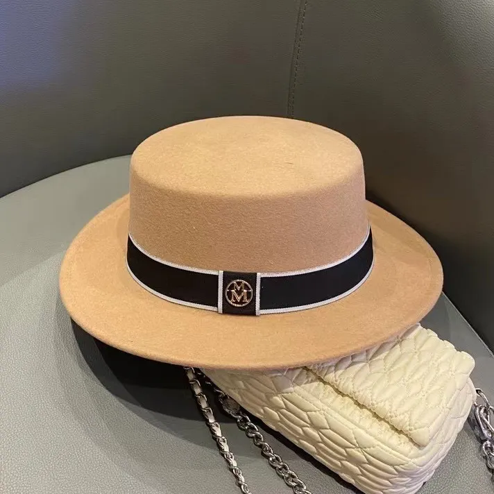 Sombrero de copa plana retro de fieltro para mujer
