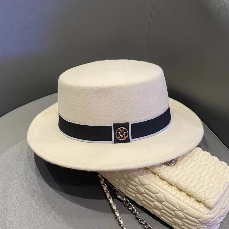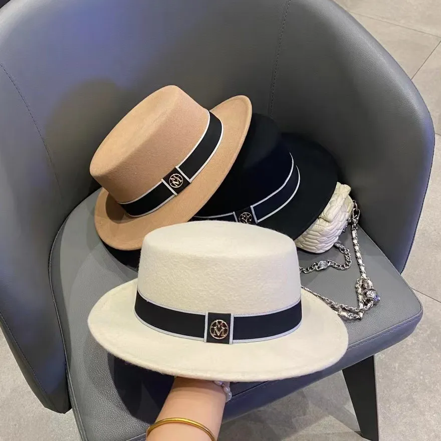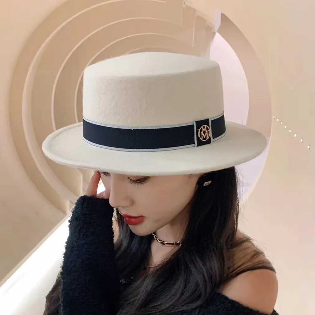 Sombrero de copa plana retro de fieltro para mujer
