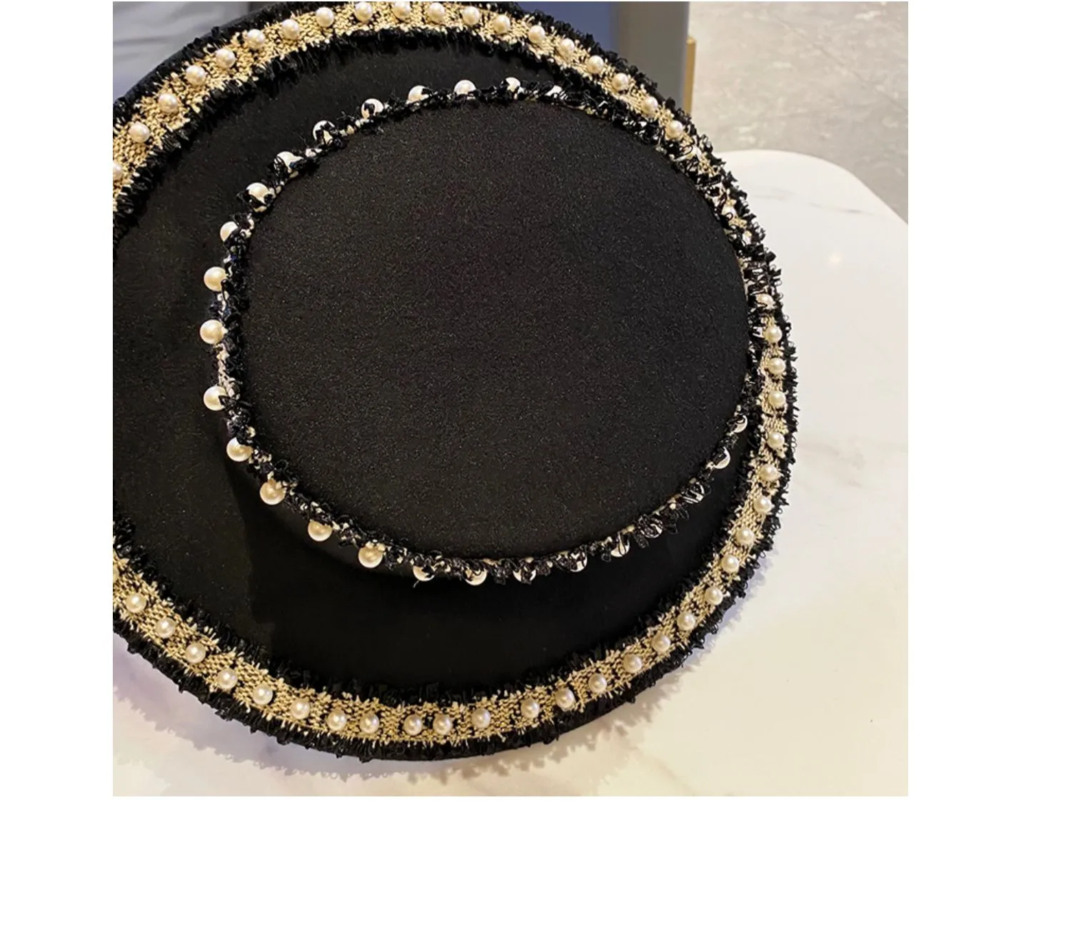 - Diseño: Sombrero de pescador de copa plana con elegantes adornos de perlas.