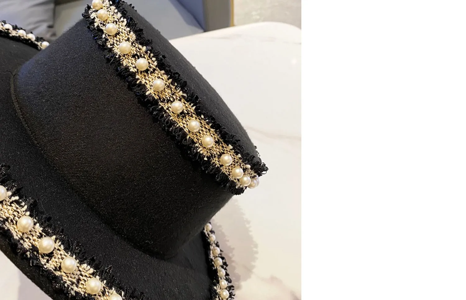 Color: sombrero ancho de lana perla negra, sombrero ancho de lana perla blanca,