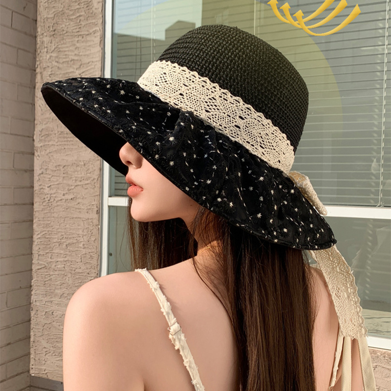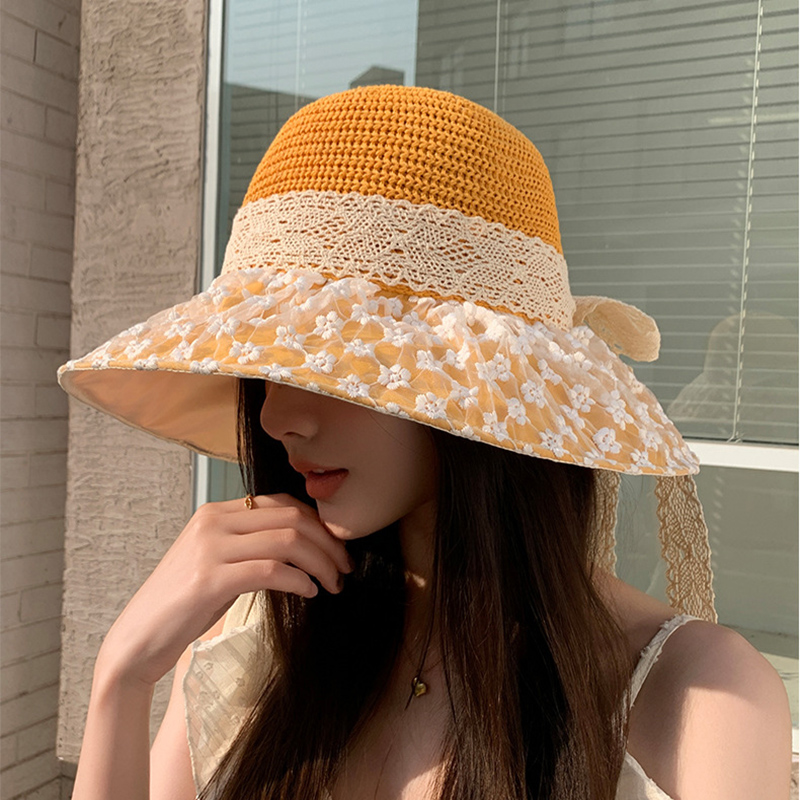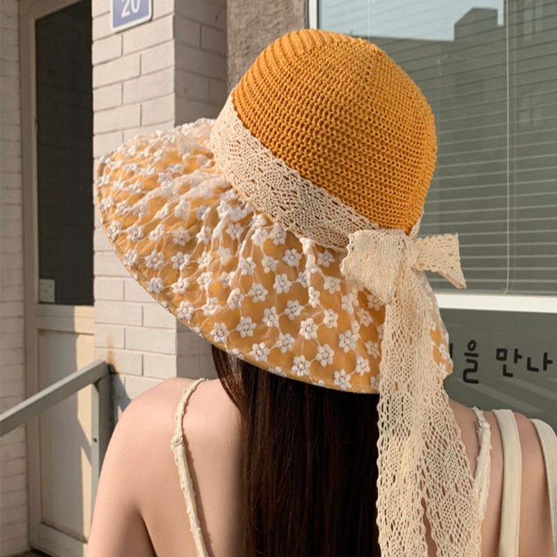 Sombrero de paja con lazo de encaje