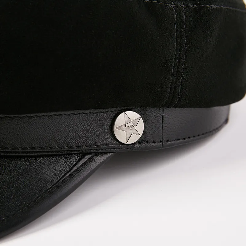 Sombrero plano de piel de oveja de moda: Sombrero de cuero unisex elegante y versátil