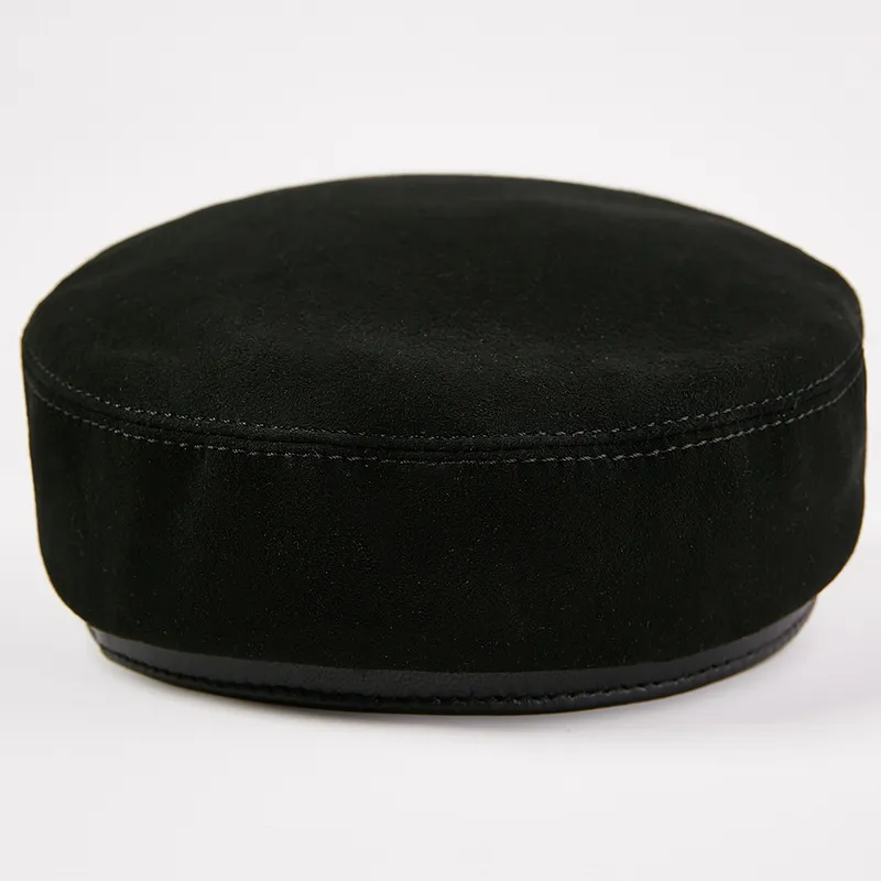 Sombrero de piel de oveja de moda, de copa plana, para jóvenes estudiantes, de cuero unisex, estilo coreano, informal, estilo azul marino.