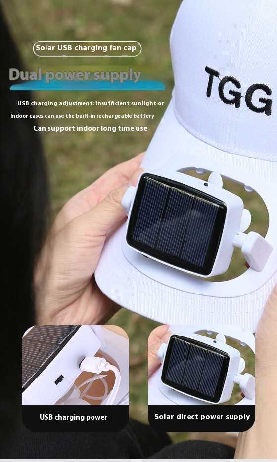Ventilador solar: El ventilador integrado funciona con un panel solar en la parte superior del sombrero, lo que proporciona una brisa continua para mantenerte fresco. Disfruta de la frescura sin necesidad de pilas ni fuentes de alimentación externas.