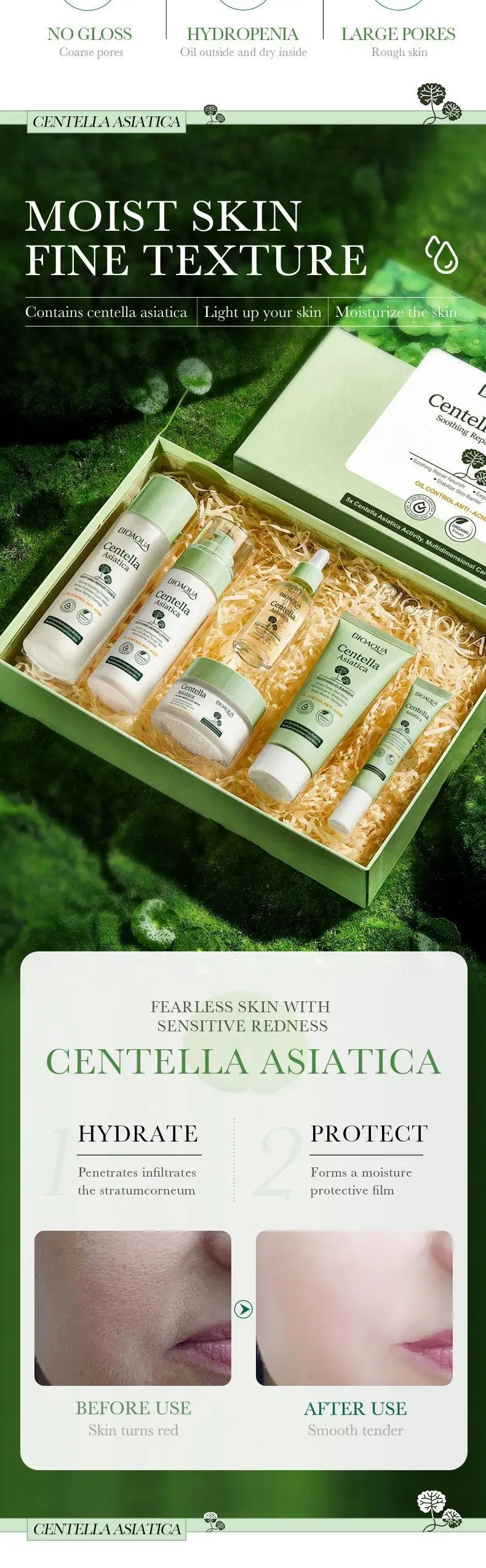 Experience the complete Centella Asiatica skincare regimen designed to calm, repair, and protect sensitive skin. Each step works synergistically to cleanse, tone, hydrate, and nourish, delivering maximum benefits for irritated, acne-prone, or compromised skin barriers. The gentle yet effective formula of the soothing cleanser removes impurities without stripping natural oils, while the toner refines pores and restores pH balance. Follow with the lightweight repair lotion to lock in moisture and prepare the skin for the nourishing face cream, rich in active botanicals that promote skin resilience and long-term healing. This curated set offers a holistic approach to skincare, ideal for those seeking visible improvement in skin texture, reduced redness, and a healthier, more radiant complexion.