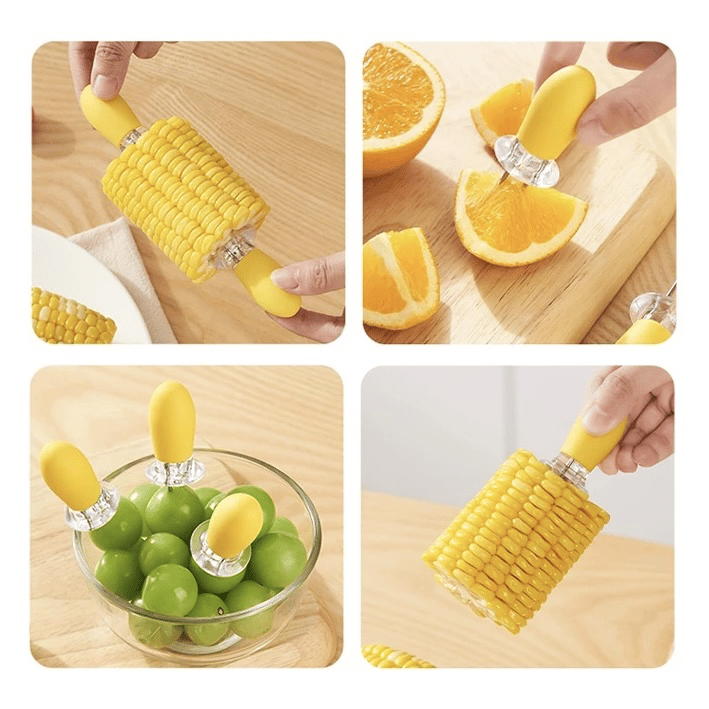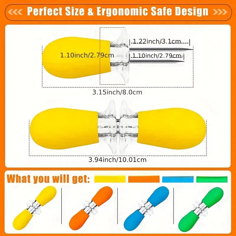 Los afilados pasadores de acero inoxidable sujetan firmemente el maíz, manteniendo sus dedos alejados de las superficies calientes. Este diseño garantiza que pueda disfrutar de su maíz con facilidad y comodidad, minimizando el riesgo de quemaduras.