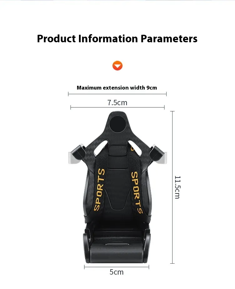 Fácil instalación El soporte para teléfono de coche con forma de asiento de carreras está diseñado para una instalación rápida y sencilla.