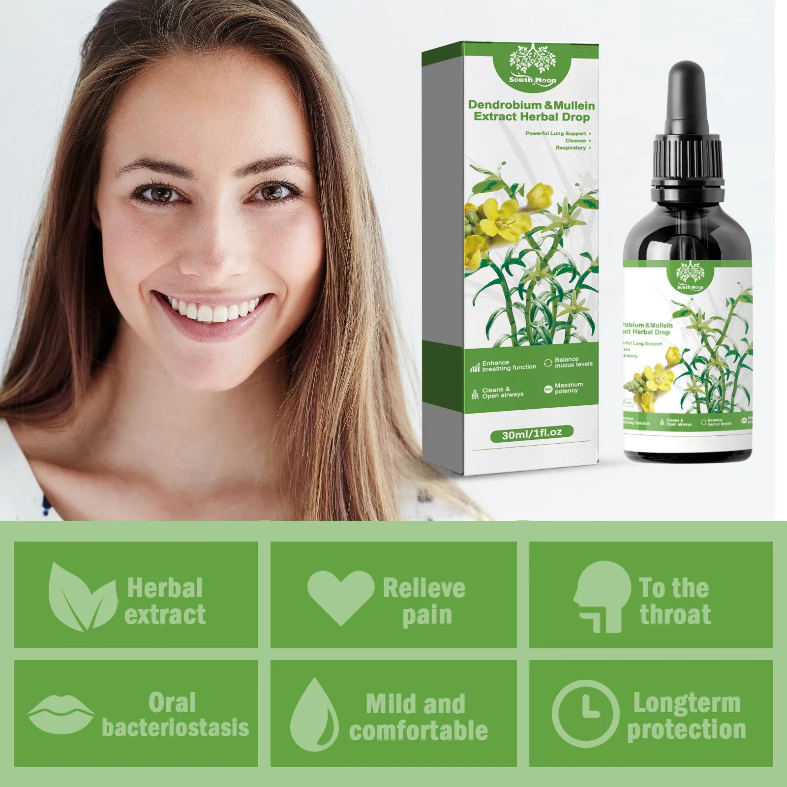 South Moon Dendrobium & Mullein Extract Herbal Drop – Enhance Lung Health and Respiratory Function