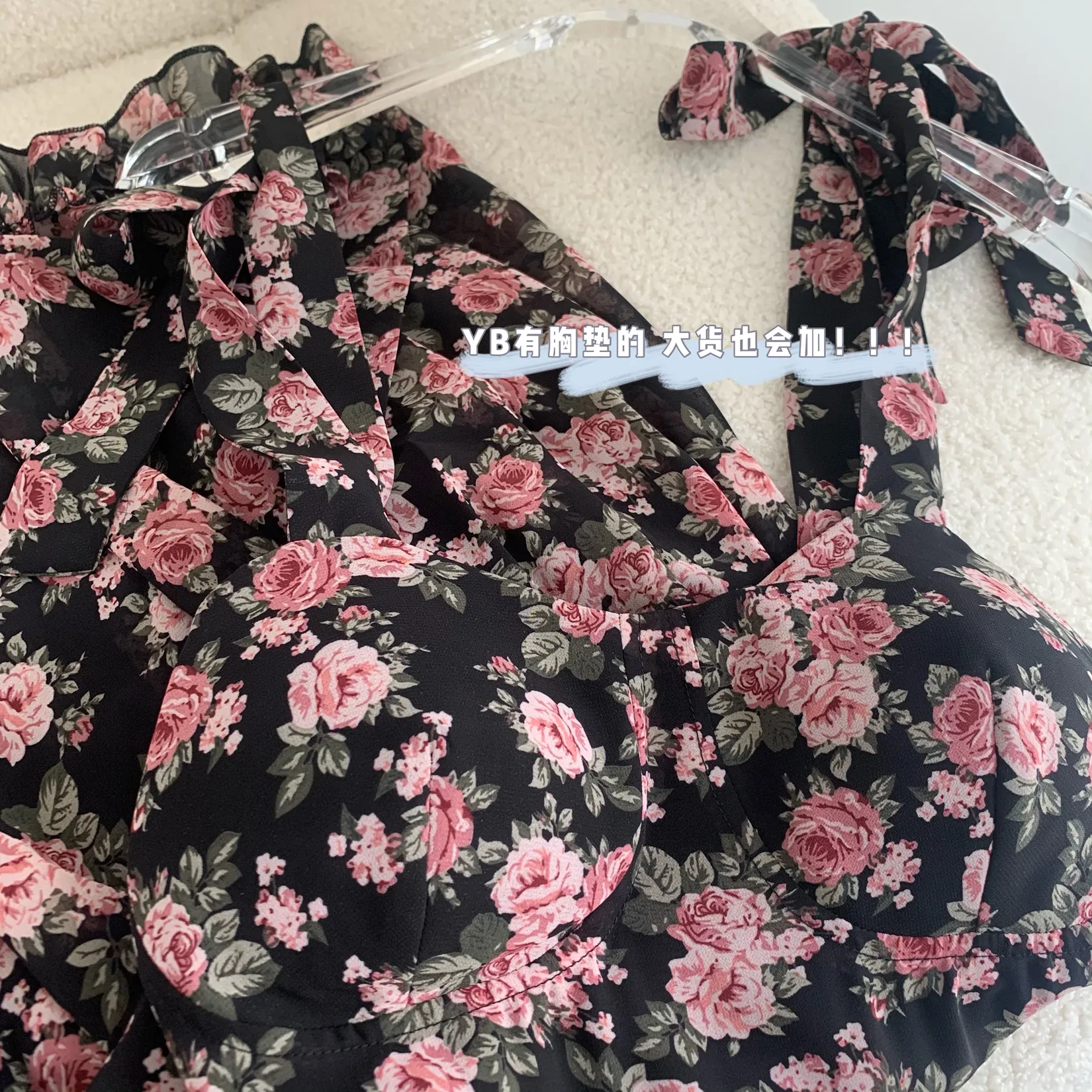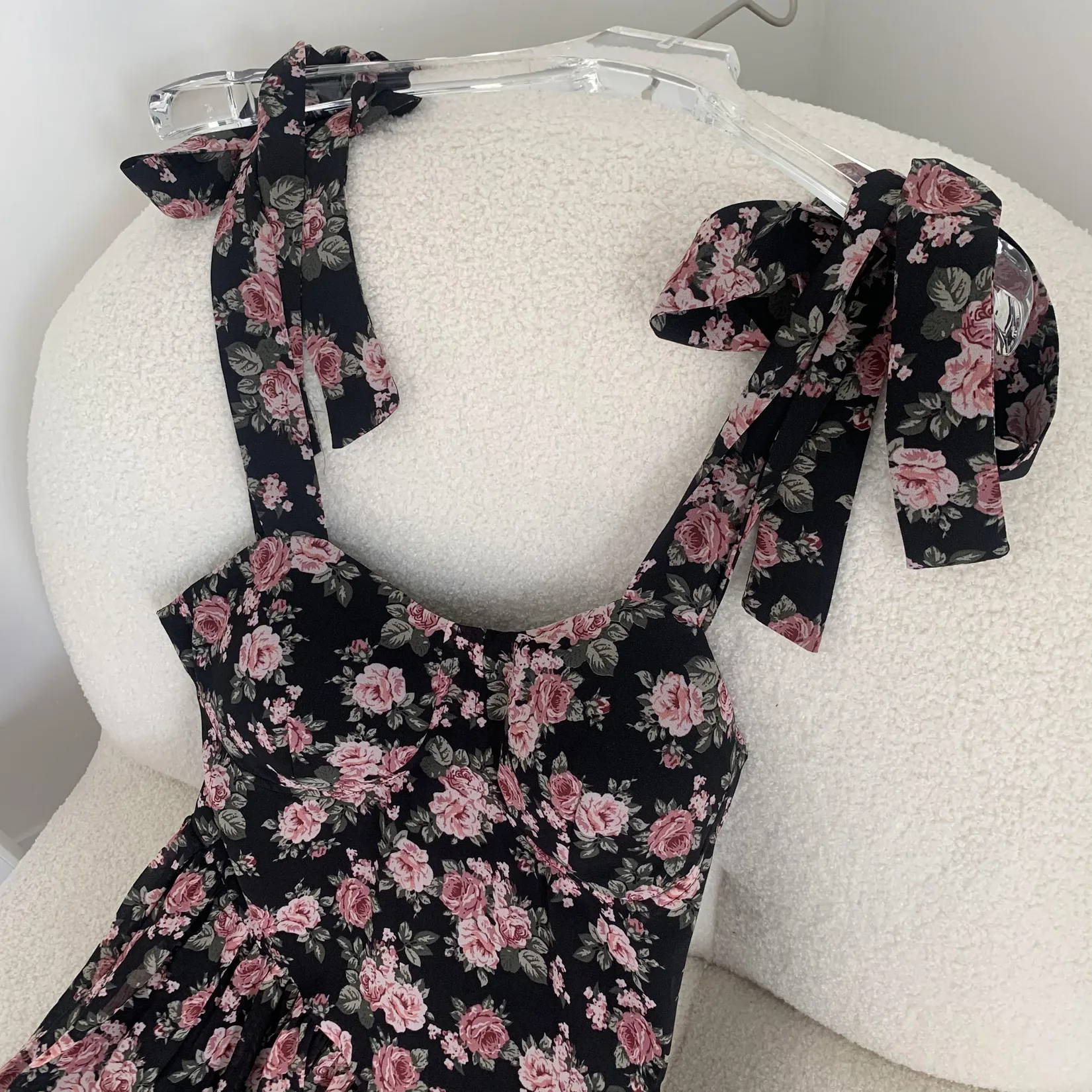 Spicy World Rich Flowers Summer Women's New Floral Bow Sling Dress