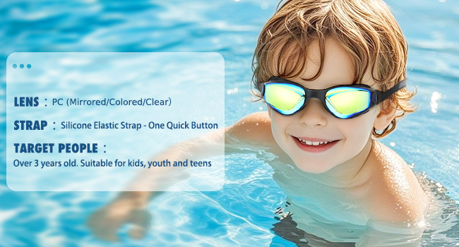 - 【Anti-fog & Anti-UV】The swim goggles for girls boys lenses have anti-fog & anti-uv treatment, which means kids can can avoid fog during swimming, get clear view underwater and no longer need to worry about children's eyes being hurt by UV when playing outdoor.