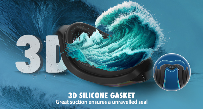 Gentle silicone gasket creates a snug seal that keeps water out — no constant readjusting mid-swim.