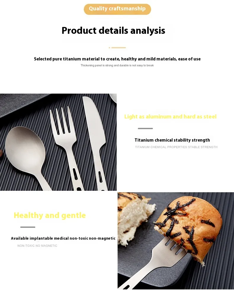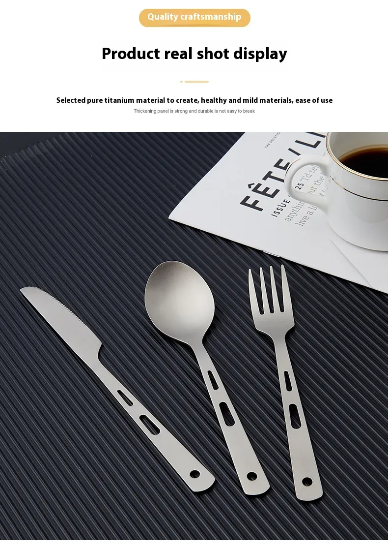 Specifications: pure titanium outdoor sandblasting knife 2.0(18.6*1.5cm) weight 14g, pure titanium outdoor spoon 2.0(16.2*3.9cm) 16G, pure