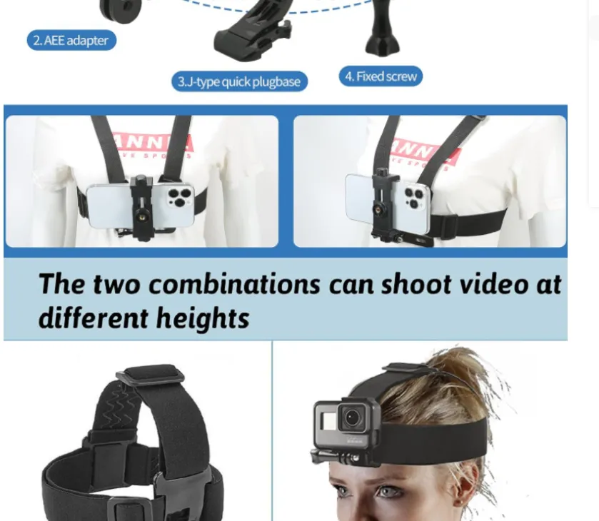 Made from high-quality, breathable materials, the straps are adjustable for a snug and comfortable fit. The lightweight and durable design ensures stability during running, cycling, hiking, or extreme sports. Easily switch between chest and head mounting positions to capture dynamic angles and immersive footage.