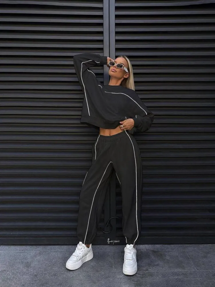 Ideal for women who want a low-maintenance yet chic outfit, this two-piece suit can easily transition from sporty to casual with the right accessories. It’s the ultimate choice for those who want to stay active and fashionable without compromising on comfort.