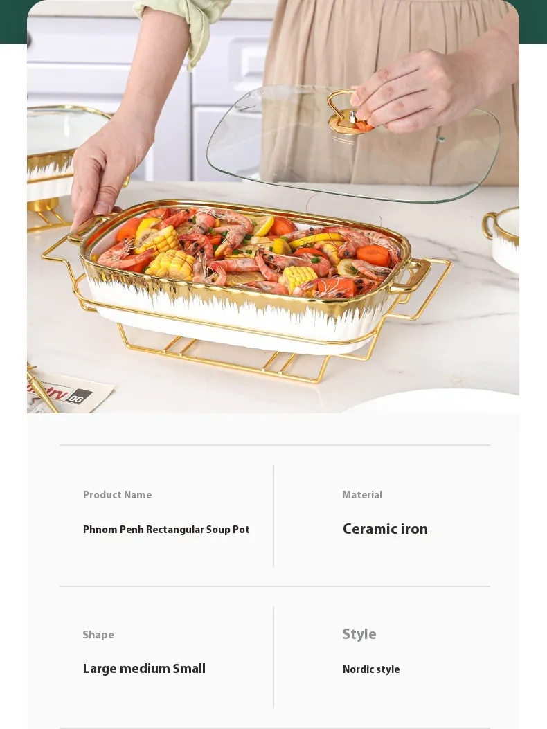 Color: gold-plated rectangular soup pot -- white small size, gold-plated rectangular soup pot -- white medium size, gold-plated rectangular