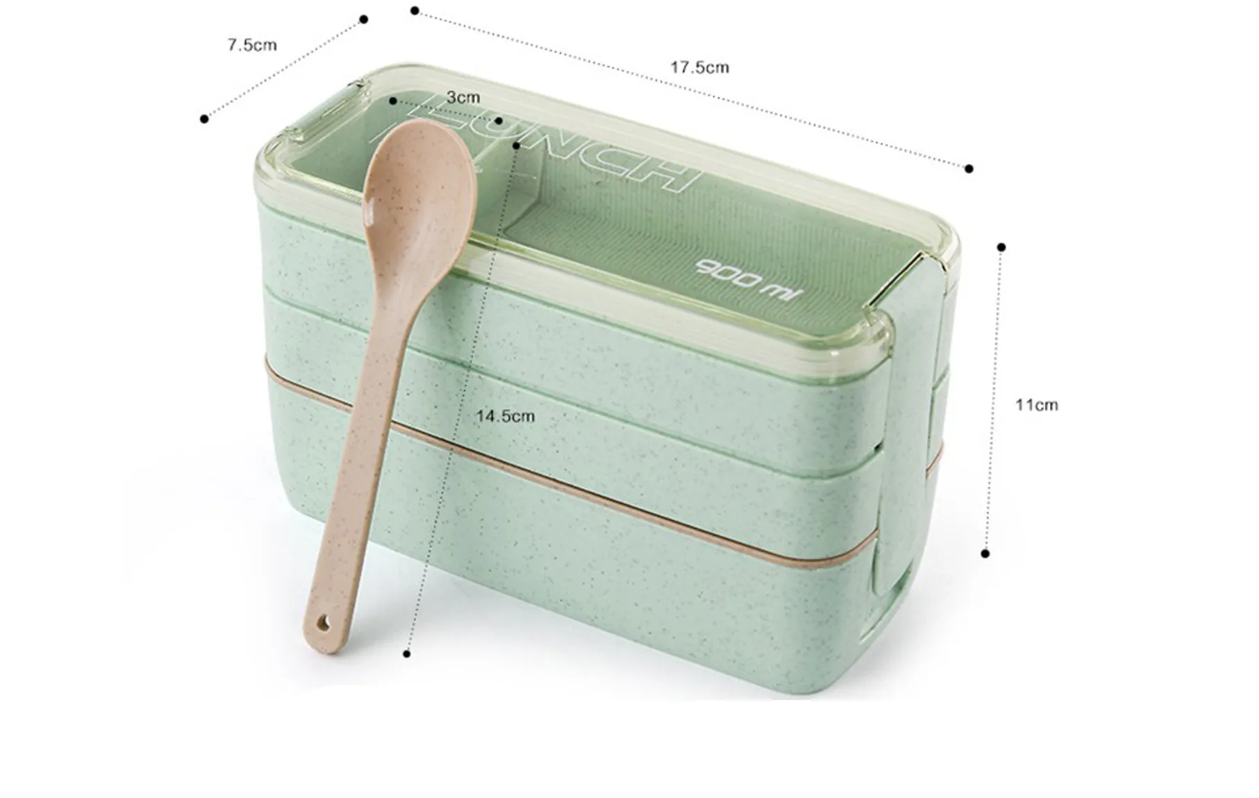 solution for packing your meals. With its three-layer design, double compartments, leak-proof lid, and durable wheat straw plastic