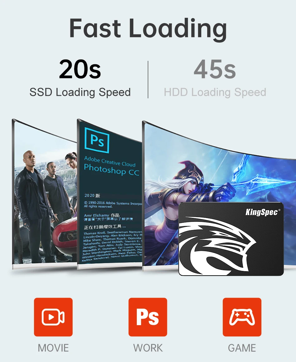 KingSpec SATA SSD is easy to fit for desktop laptop, all in one PC or other device that support standard 2.5-inch SATA form factor.