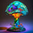 When the lamp is turned on, the light radiates through the colored shade and illuminates the colored color chips. The illuminated color